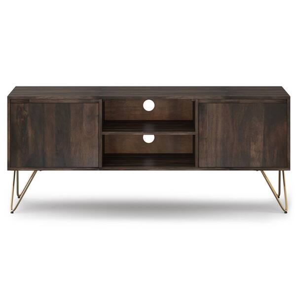 Simpli Home Hunter Solid Mango Wood 60 Inch Wide Industrial Tv Media Stand In Umber Brown Stain For Tvs Up To 65 Inches Umber Brown Stain Axchun 08 Ub Best Buy